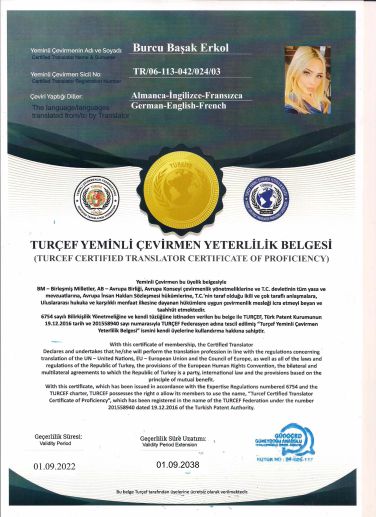 Uluslararası geçerliliğe sahip olan bu belge, Türkiye’de faaliyet gösteren TURÇEF, Türk Yeminli Çevirmenlik